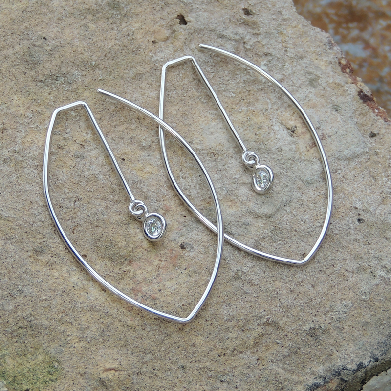 Handmade hardened wire earrings are available in 14k yellow, white, or rose gold. Shown in 14k white gold with two .10 carat round brilliant diamonds with a total diamond weight of .20 carats.